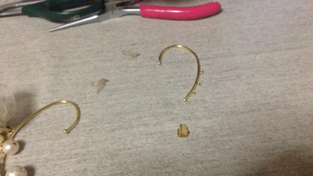 ふわふわシフォンのリボンとコットンパールで、人気のイヤーカフを作りました。イヤーカフは、ピアスホールがなくても、イヤリングのように耳を挟むこともなく耳に掛けるだけでご使用できるアクセサリーです。耳元でゆれるシフォンとパールがチャーミングな作品になりました。