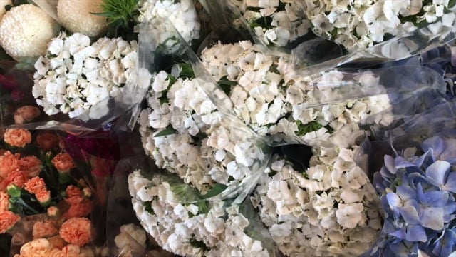 お花屋さんで撮りました。白い花の上も蜜蜂が沢山飛んでたので スローで撮影してみました。