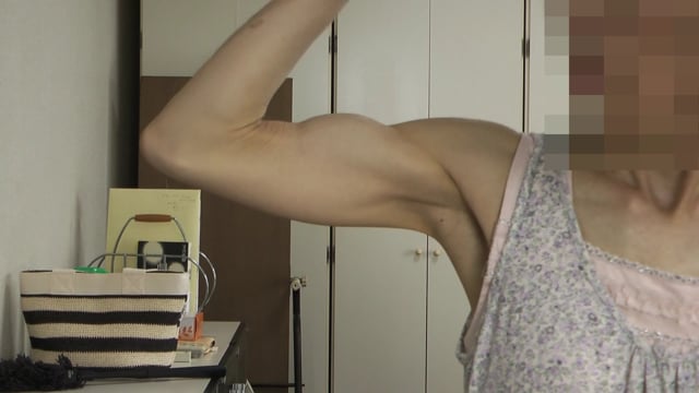 細身の女性の力こぶ動画です。※プライバシー保護のため、顔および音声は消しております。