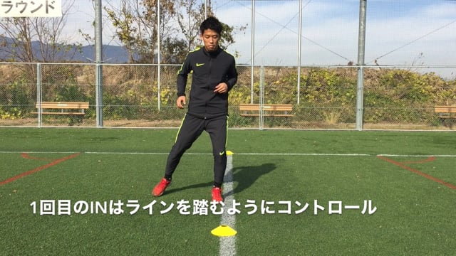 STEP12.side side in2サイドステップの1~2歩目はライン上にコントロールその後、素早く外の足でインイン1歩目のインはライン上にコントロールサイドステップで重心が外に流れてしますと、動きにタメが出来てしまいます。