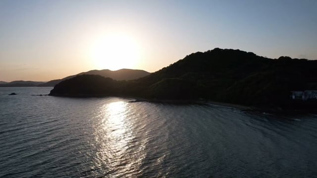 夕焼けの海岸を海上空から撮影しています(*^^*) ☆オススメ表現シーン☆ ・ロマンチック ・エモい ・穏やか ・平和 是非ご活用下さい!(^^)! 【商品情報】 公開日 :2021.5.14 ファイル形式 :mp4 画質 :4K30fps クリップの長さ:7秒