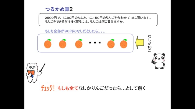つるかめ算の基本です。これから受験を始める方や、算数が苦手な方には特にお勧めです。また、中学受験を考えていない小学生の方にも思考力アップには最適です。