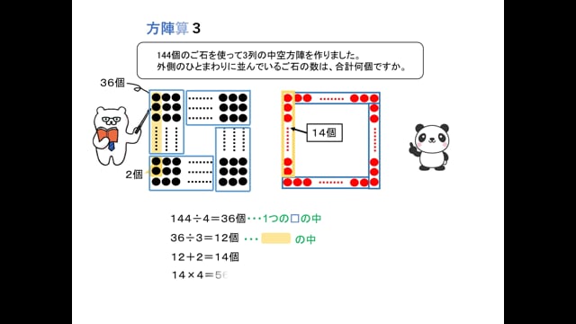 方陣算の基本です。これから受験を始める方や、算数が苦手な方には特にお勧めです。また、中学受験を考えていない小学生の方にも思考力アップには最適です。