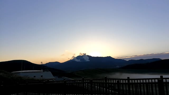 草千里展望所から見る阿蘇火口の夜明けのタイムラプス動画です。