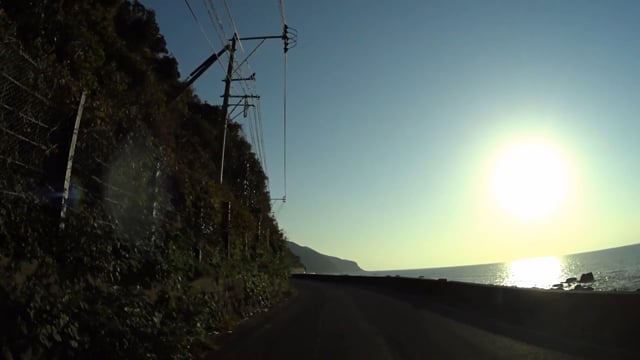 夕焼けまでにもう少し日が高い海岸通りの車窓風景です。