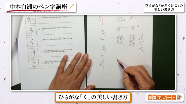 ■文章の7割を占める「ひらがな」を美しく書きましょうひらがなは日本語文章の約7割を占めると言われています。ひらがなの美しい書き方を身につけるだけで字の印象は大きく変わります。本動画では、ひらがなの『かきくけこ』を解説しています。