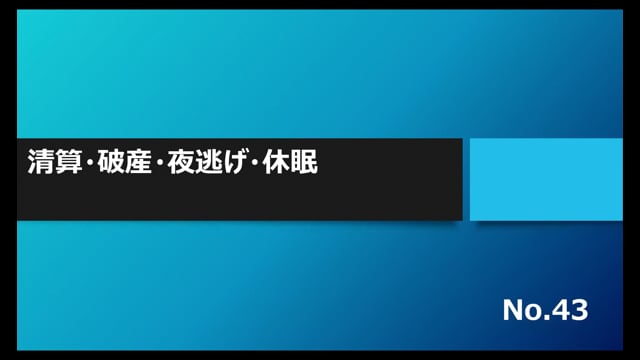 【概要】1.外資企業の出資者の責任と破産、2.夜逃げ、3.休眠【収録】2021年8月
