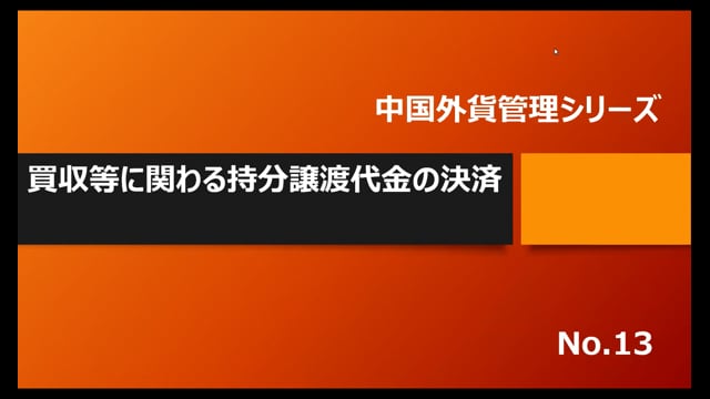 【概要】1.外資企業の持分譲渡、2.持分譲渡代金の決済、3.税務上の手続【収録】2021年11月