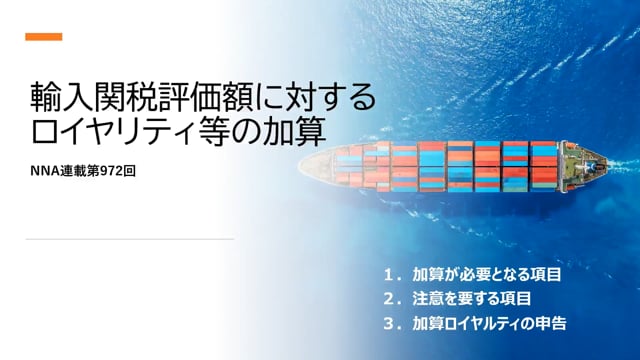 【概要】1.加算が必要となる項目、2.注意を要する項目、3.加算ロイヤルティの申告【収録】2022年9月