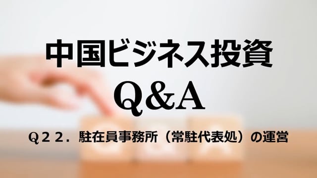 【概要】1.常駐代表事務所の特徴、2.常駐代表処の活動範囲の実務解釈【収録】2022年10月