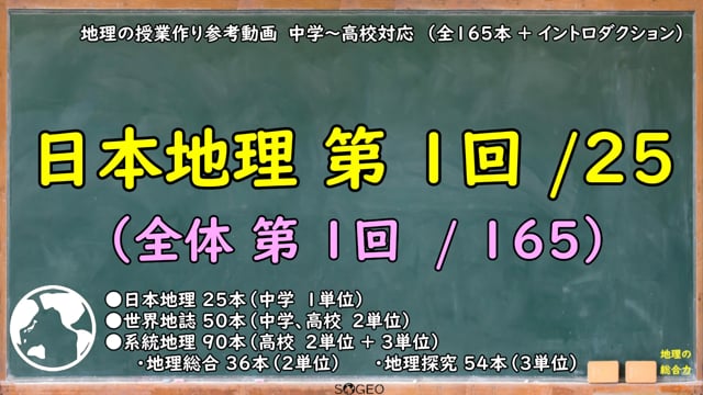 中学校や高校で地理の授業を初めて担当することになった先生方、または地理の授業に少し不安を感じている先生方に、授業づくりや教材づくりのヒントをお届けするための動画シリーズです。全165本(日本地理25本、世界地誌50本、系統地理90本(地理総合36本、地理探究54本))構成となっています。
