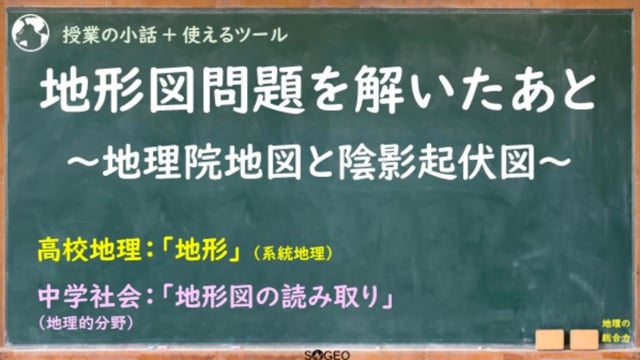 「地形(地形図)」で使える内容です。地形図の演習を行った際は、その地域を地理院地図で見る癖をつけさせましょう。平面の地形図上での見え方と実際の姿をリンクさせて理解できます。↓こちらのページにも説明があります。https://chiri-so-geo.com/tips-0145/動画時間:約5分