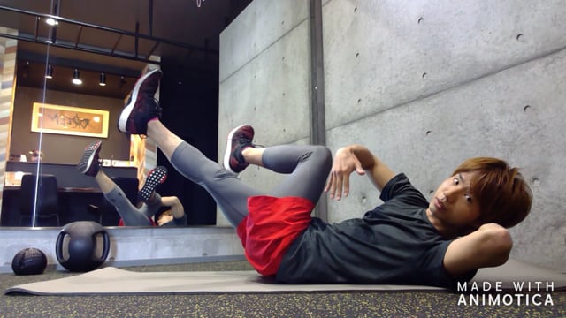 鍛えにくい下腹部のトレーニングです。腰の隙間を埋めることをしっかり意識することが大事です。無理に脚を伸ばした状態でせず、腰の隙間が開かないでできる範囲で行いましょう。脚を上げる際に、お尻をすくい上げるように意識してみるとより効果的です!