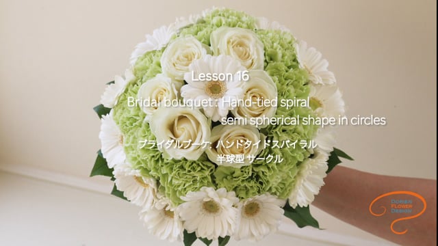 特典付き レッスン16 ブライダルブーケ: 半球型 サークル ハンドタイドスパイラル Lesson 16 Bridal bouquet: semi spherical shape in circles hand-tied spiral
