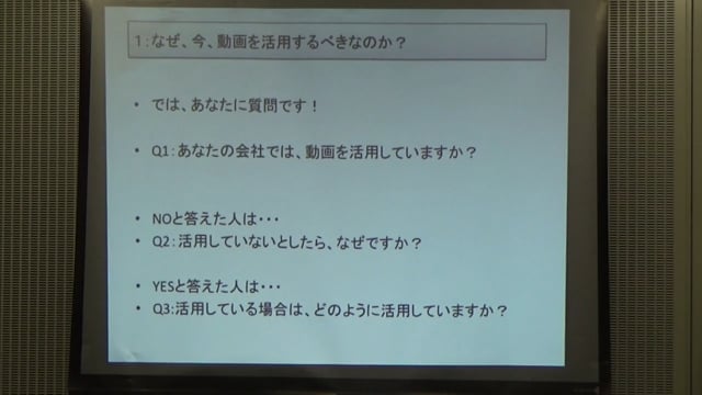 セミナー会場で撮影した動画です。 *約2時間のセミナーを3分割してお届けします。 1章:なぜ、今、動画を活用するべきなのか? 1)動画コンンテンツの魅力 2)2015年は動画の時代 3)YouTubeを利用する理由 第2章:iPhoneだけでさくっと動画を作る方法 1)大村式動画作成7ステップ 2)動画作成事例 第3章:動画でファンを作る方法 1)ファン作りの目的を決める 2)ファン作り動画の内容を決める 3)最後まで視聴される構成を決める 第4章:動画作成ワーク 1)イントロ動画を作る 2)エンディング動画を作る 3)コンテンツ動画を作る 3)動画をつなげて編集する