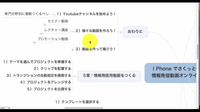 情報発信動画作成オンライン講座(別売り)の概要を、シンプルマップをつかって説明しました。 <詳細&お申込みは”About"にURLが掲載されています> *この動画作成に使用したアプリ:Camtasia Studio 2 for Mac & Mindjet Mind manager for Mac