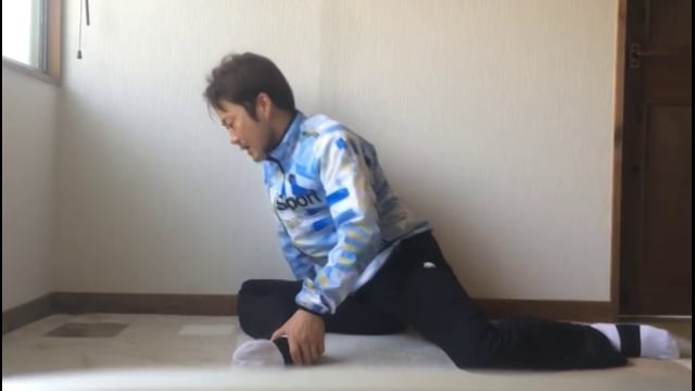 説明分:太ももの前面、臀部を伸ばすストレッチです。