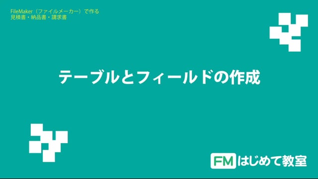 FileMaker(ファイルメーカー)で作る見積書・納品書・請求書作成 2/27回です。すべての基礎となる、ファイルの作り方、データの入れ物となるテーブル・フィールドの作成について、解説しています。