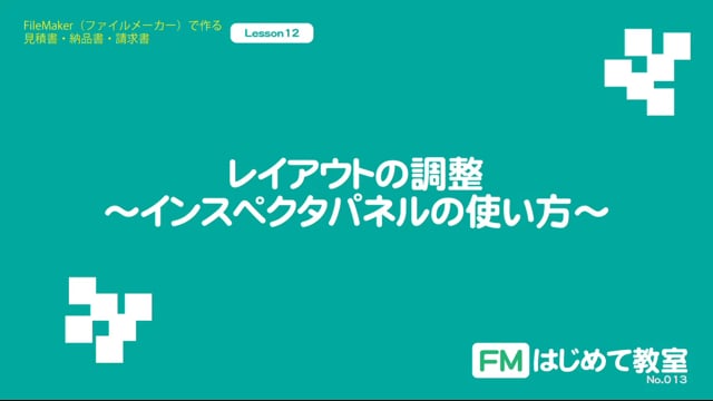 FileMaker(ファイルメーカー)で作る見積書・納品書・請求書作成 12/27回です。今回は、レイアウトの調整・インスペクタパネルの使い方について解説しています。レイアウトは、使う人にとって使いやすくなければ、業務が効率的に進んでいきませんし、取引先に渡す帳票類では、会社の信用度にも影響します。この動画では、見積書の印刷用のレイアウトの調整を行っていきます。