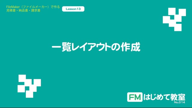 FileMaker(ファイルメーカー)で作る見積書・納品書・請求書作成 13/27回です。今回は、一覧レイアウトについて解説しています。一覧レイアウトは、複数のレコード(帳票類)を一度に見ることのできるレイアウトで、そのレイアウトから、編集用の画面へ移動するためのモノです。
