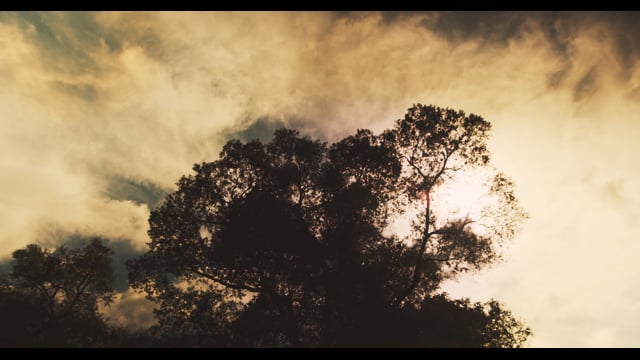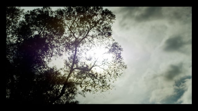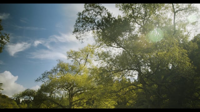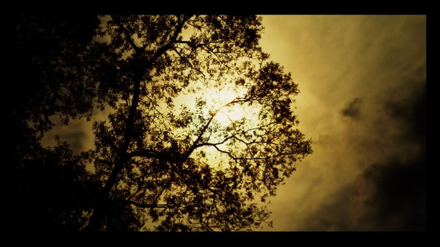 森の大きな木に差す夏の終わりの光が反射して綺麗です。