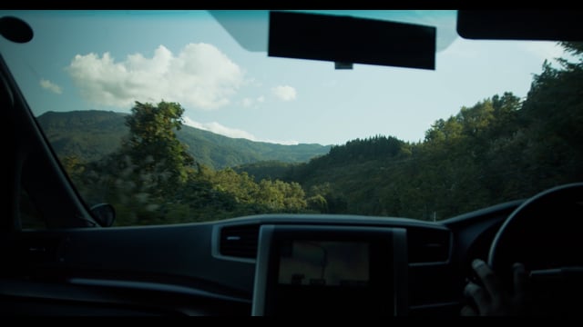 緑が色づく山並みが見える田舎道をゆっくりドライブしました。カメラは固定してあるので危険ではありません。