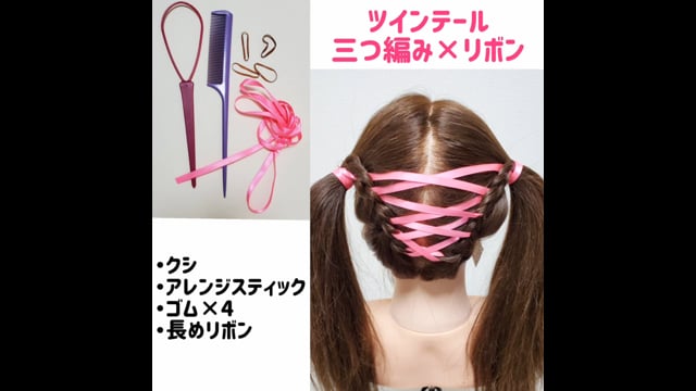 こちらの動画は、襟足から上に向かってリボンを絡めていくやり方です