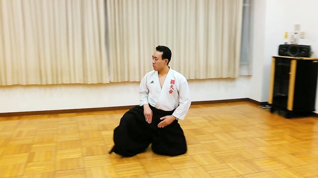 膝行の様子です。礼法や座技練習時に使用します。硬い場所ではなく畳の上で練習してください。