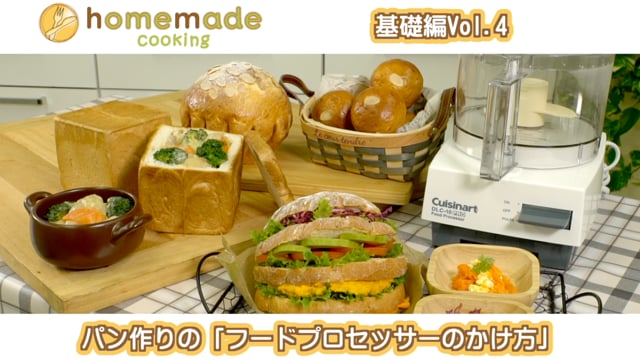 フードプロセッサーを使ったパンの生地作りから、スライサーやおろし金など付属品の使い方を紹介しています。これ一台で豪華なパーティーメニューができます。