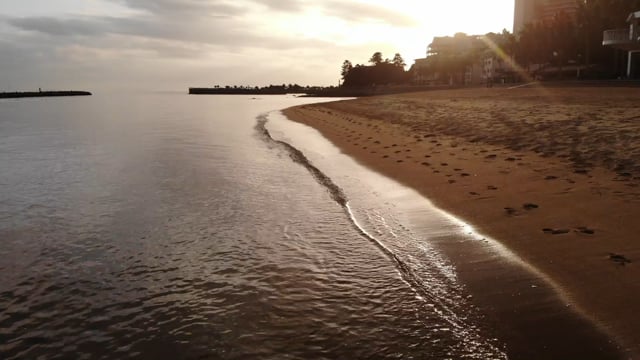 愛知県西尾市にある吉良ワイキキビーチの波打ち際のドローン映像です。夕暮れ時の撮影でしたので、雰囲気の良い映像が撮影出来ました。海をイメージした動画を作りたい方、癒し動画を作りたい方はいい素材になると思います。