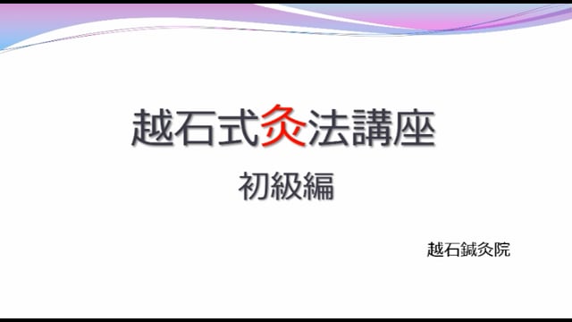 約38分対象 灸師資格取得者・鍼灸学校学生越石式灸法講座の初級です。越石式灸法または紫雲膏灸を初めて行う方向き①概要紫雲膏灸及び越石式灸法の誕生対応疾患・対応症状②実技糸状灸と多壮灸のひねり方※越石式灸法セミナー ベーシックコースの一部 受講済みの方には復習となります。