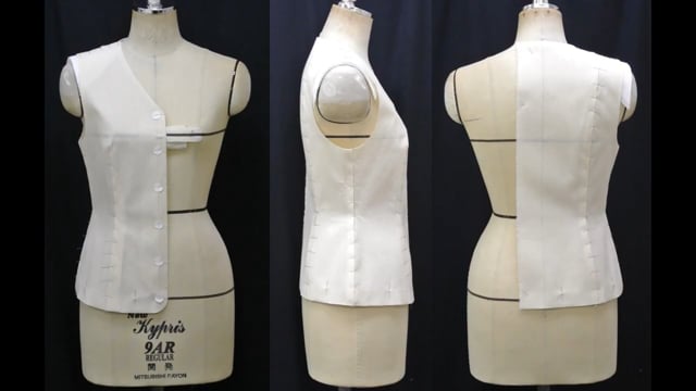 後に切替が有る場合のデザイン線作成方法、ベストのアームホールの学習9号サイズの原型パターンPDFデータがダウンロードできます。