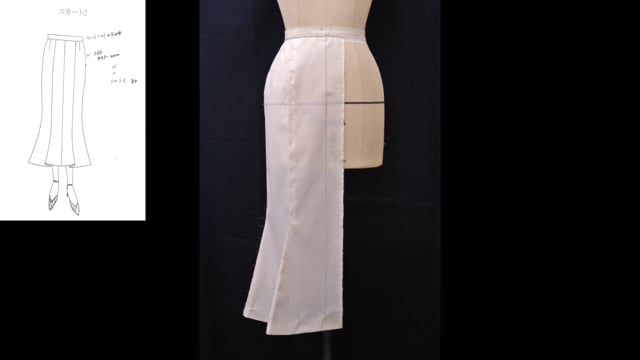 マーメイドシルエットのスカートを作成します。ダーツ移動やシルエットの出し方から工業用の仕上げまでを学習します。