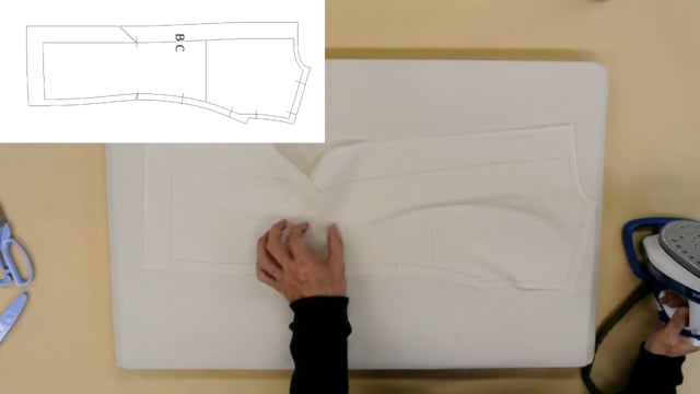 レディースのテーラージャケットのアイロンワーク(くせ取り)の解説アイロンの使い方や力を入れる方向が詳しく分かります。縫製の際に実施する事でハイクラスの物創りが出来る様になります。後身頃脇身頃前身頃衿袖各パーツのアイロン操作が解ります。