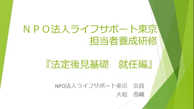 法定後見の実務について、就任時の事務をご説明する講義です。
