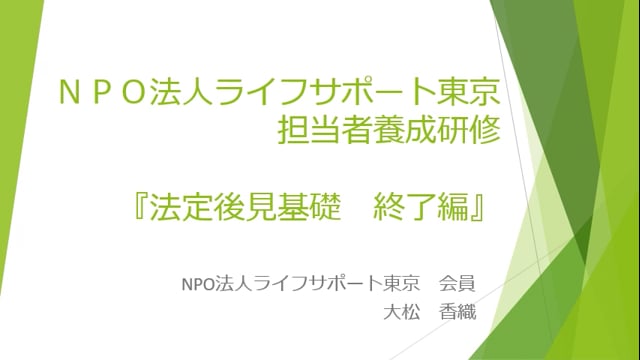 法定後見の実務について、終了時の事務をご説明する講義です。