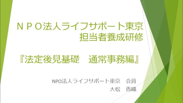 法定後見の実務について、通常時の事務をご説明する講義です。
