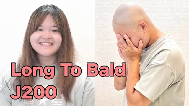カット前後インタビュー、粗切り、バリカン、カミソリ剃髪、シャンプー、顔ぞり、第三者カット前とスキンヘッド触り、外歩き等収録(約40分)