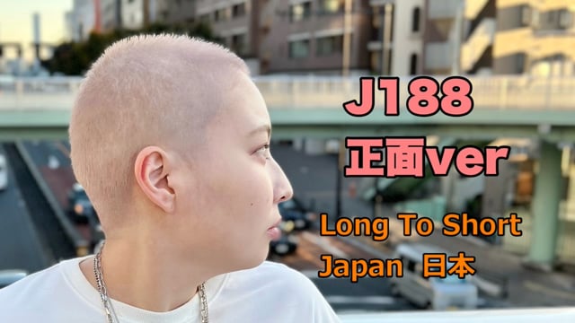 一ヶ月前に挙式されたモデル様。式も挙げたので今までずっとやってみたかった坊主頭に。結婚式の為に伸ばしたロングヘアー(エクステ含む)をバリカンで丸刈りにしてピンク色にカラーリングしました。