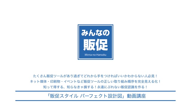 「販促スタイル パーフェクト設計図」動画講座は、ネット媒体・印刷物・イベントなど販促ツールの正しい取り組み順序を完全見える化!
