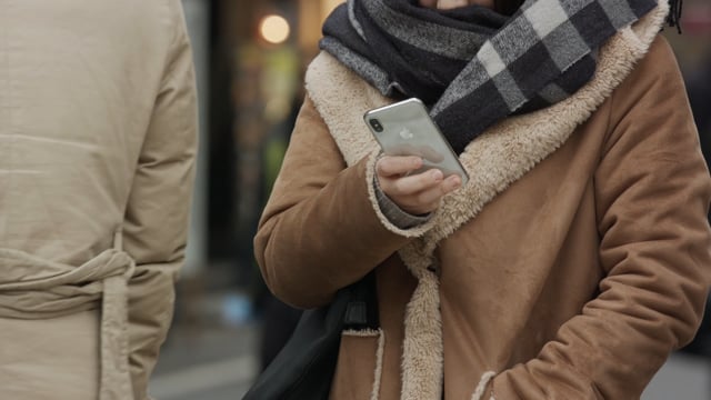 ・スマートフォンを触る女性 ・冬の東京 ・スマホ ・メディアの多様化 ・Twitter,Facebook,LINEなどSNSを使う若者たち