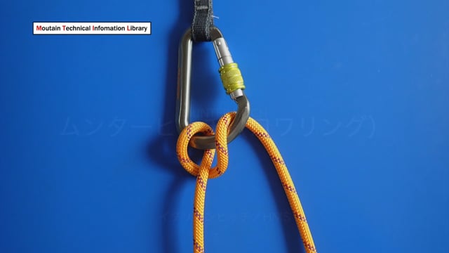 カラビナ一枚で人を降下させることができる方法です。ビレイ(確保)のときとは結び目の向きが変化します。