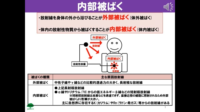 内部被ばく内部被ばく(摂取経路)内部被ばく(代表的な放射性核種の臓器親和性)内部被ばく(実効半減期と排泄)体内放射能の測定法