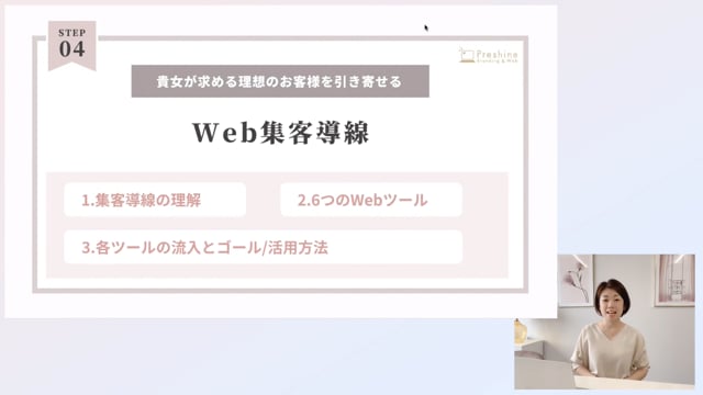 理想のお客様が引き寄せられる貴女から買いたいお客様が集まる【STEP04】 Web集客導線・Web上の集客(接客)導線を作り上げる・お客様を引き寄せる6つのツールとは?・集客(接客)導線ツールの入り口と出口の明確化