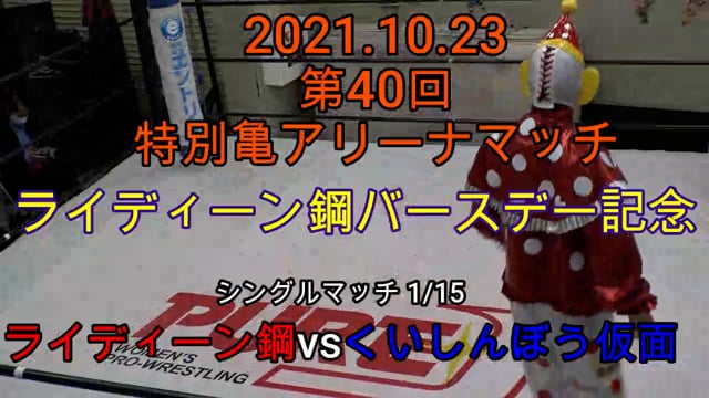 2021.10.23第40回・特別亀アリーナマッチライディーン鋼バースデー記念 シングルマッチ 20分1本勝負ライディーン鋼 vs くいしんぼう仮面
