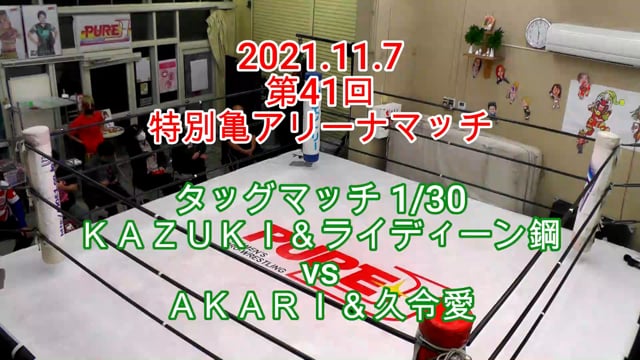 2021.11.7第41回特別亀アリーナマッチタッグマッチ 1/30KAZUKI&ライディーン鋼vsAKARI&久令愛