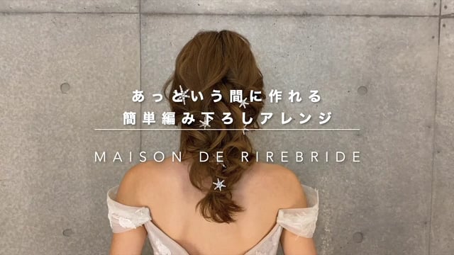 今回は簡単に作れる編み下ろしのヘアアレンジをレクチャーしていきます!より抜け感を作って軽く滑らかに見えるような編み下ろしになります!花嫁様にもお呼ばれヘアアレンジでも使えるスタイルになりますので是非試してみて下さい!難易度★★☆☆☆