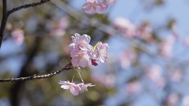 河津桜。5分咲き程度でしょうか? 晴天に恵まれました。