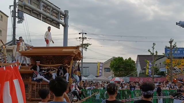 だんじりの見せ所 やり回し 綺麗にカーブを曲がるシーン
