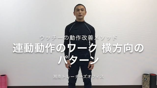 骨盤と肩甲骨の連動動作のワークになります。基礎編と違い腕と脚を使い、より実践的な動きを習得します、前額面と言われる横方向の動きを練習しましょう!骨盤とともに脚を上げると、同じ側の肘が下がる動きです。力で動いていると体幹が固定されるため、脚をあげた側の腕が一緒に上がる傾向が見られます。その癖を取り除くように、自然にバランス動作ができるように練習しましょう!